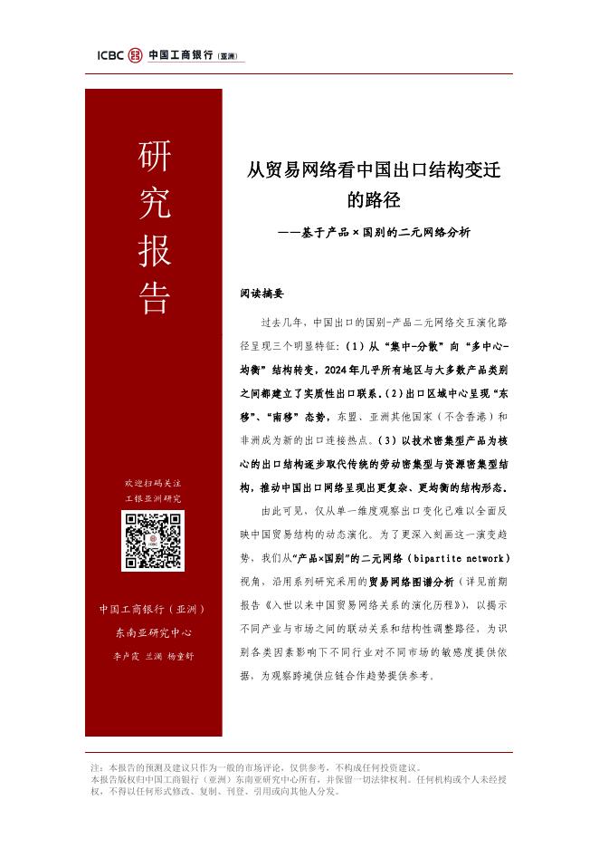 中国工商银行(亚洲):2026年从贸易网络看中国出口结构变迁的路径-基于产品×国别的二元网络分析报告.pdf