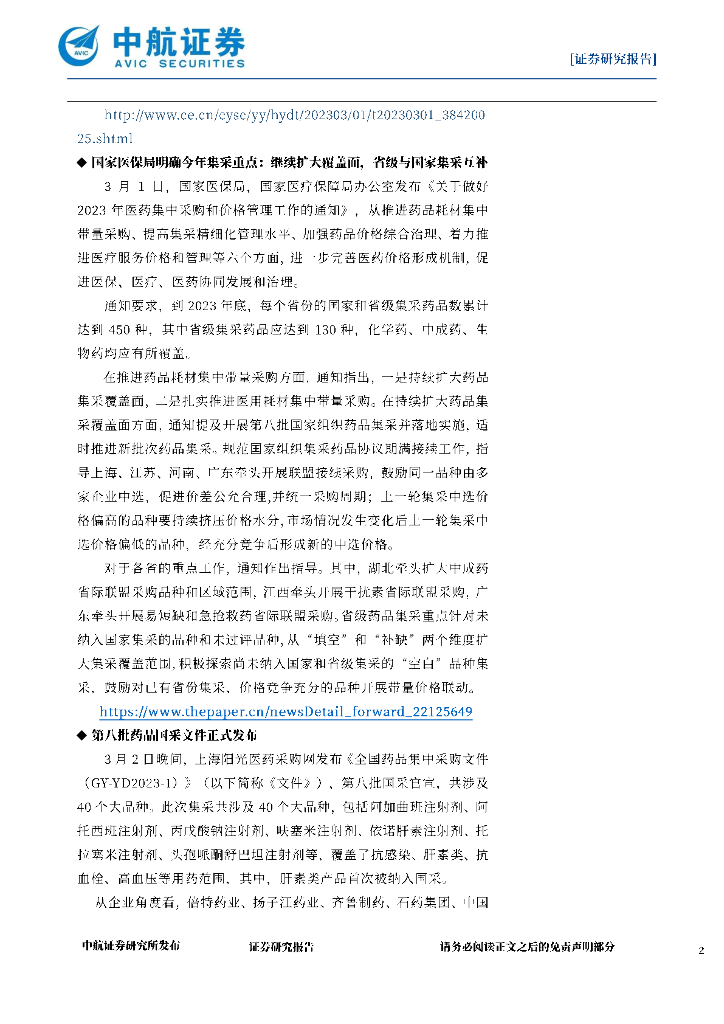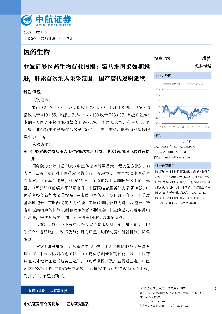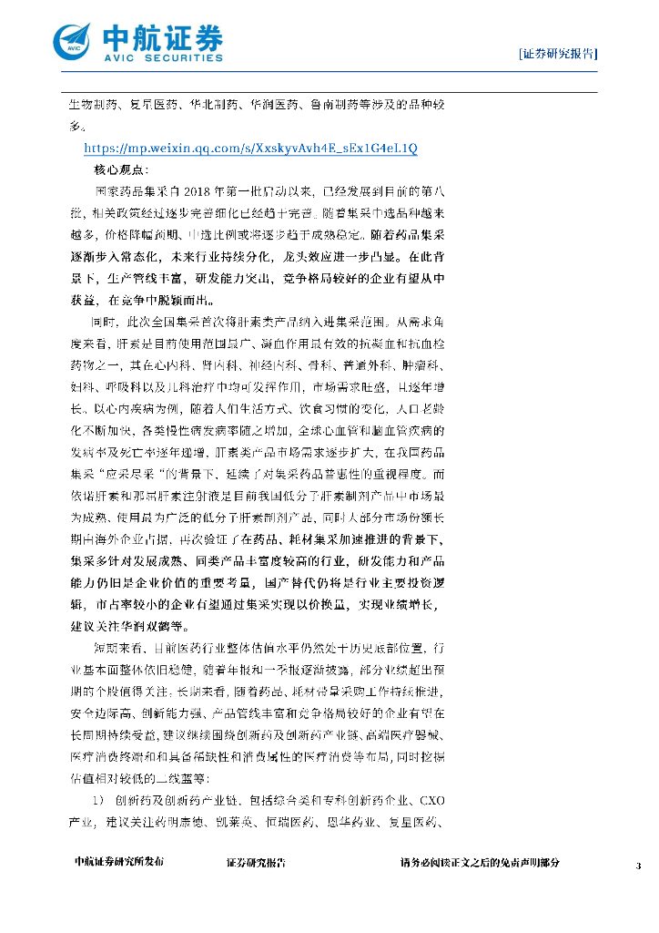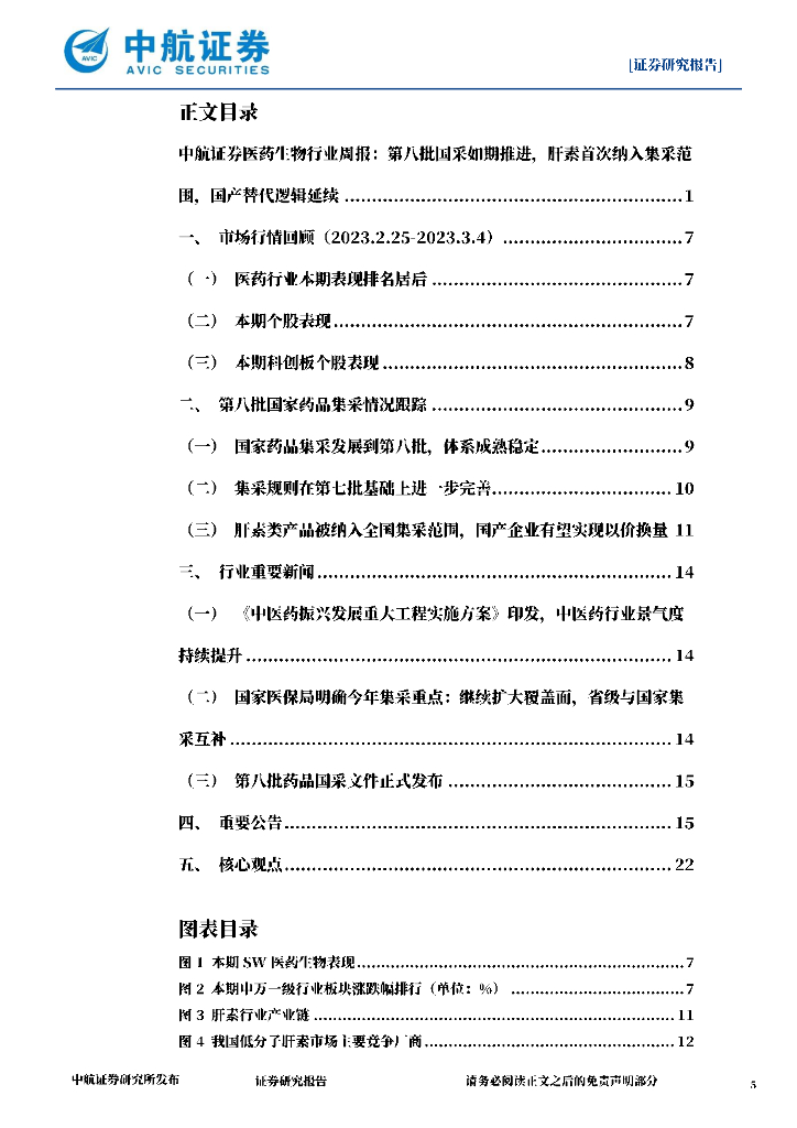 中航证券:医药生物行业周报:第八批国采如期推进,肝素首次纳入集采范围,国产替代逻辑延续.pdf