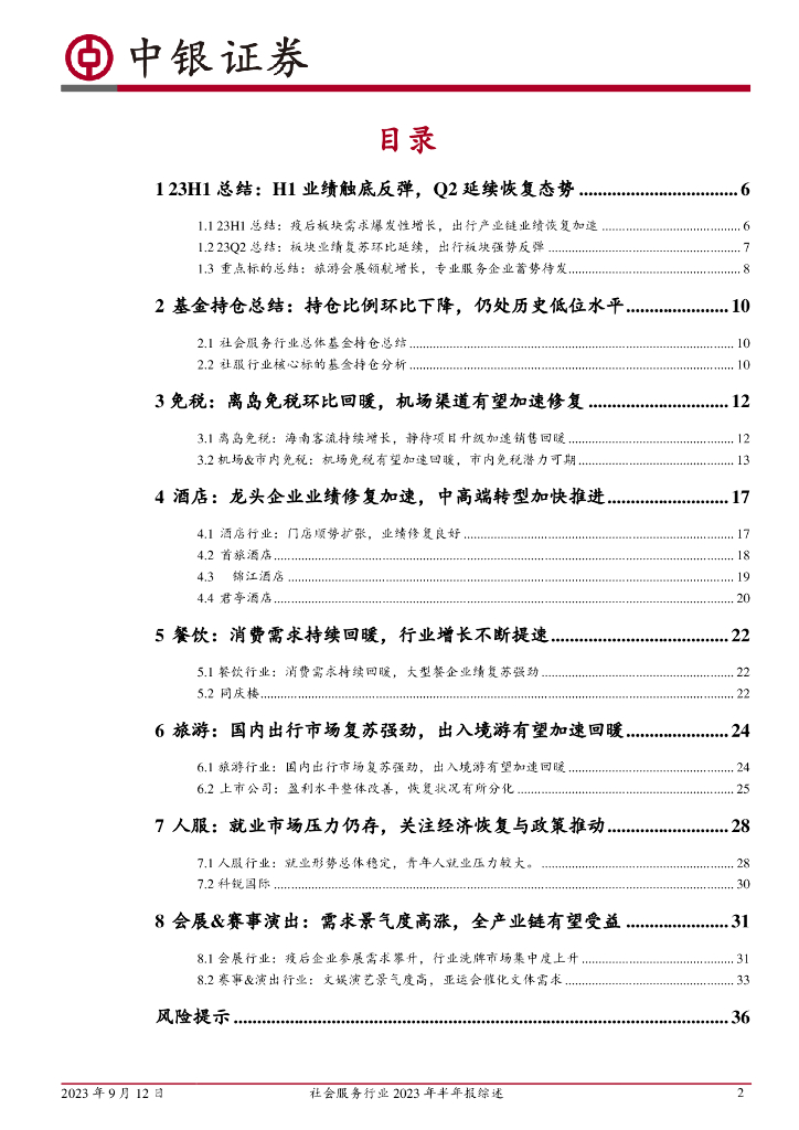 中银证券:社会服务行业2023年半年报综述:H1业绩复苏预期得到阶段性验证,Q2行业复苏持续加速.pdf