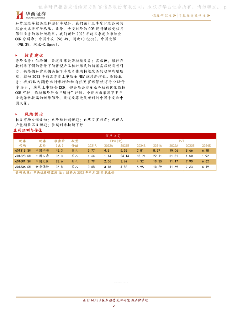 华西证券:保险行业2023年三季报业绩前瞻:量价齐升推动NBV正增,财险COR边际承压.pdf