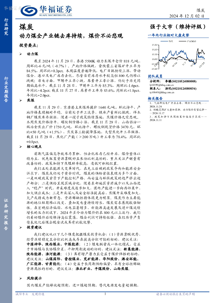 华福证券:煤炭行业定期报告:动力煤全产业链去库持续,煤价不必悲观.pdf