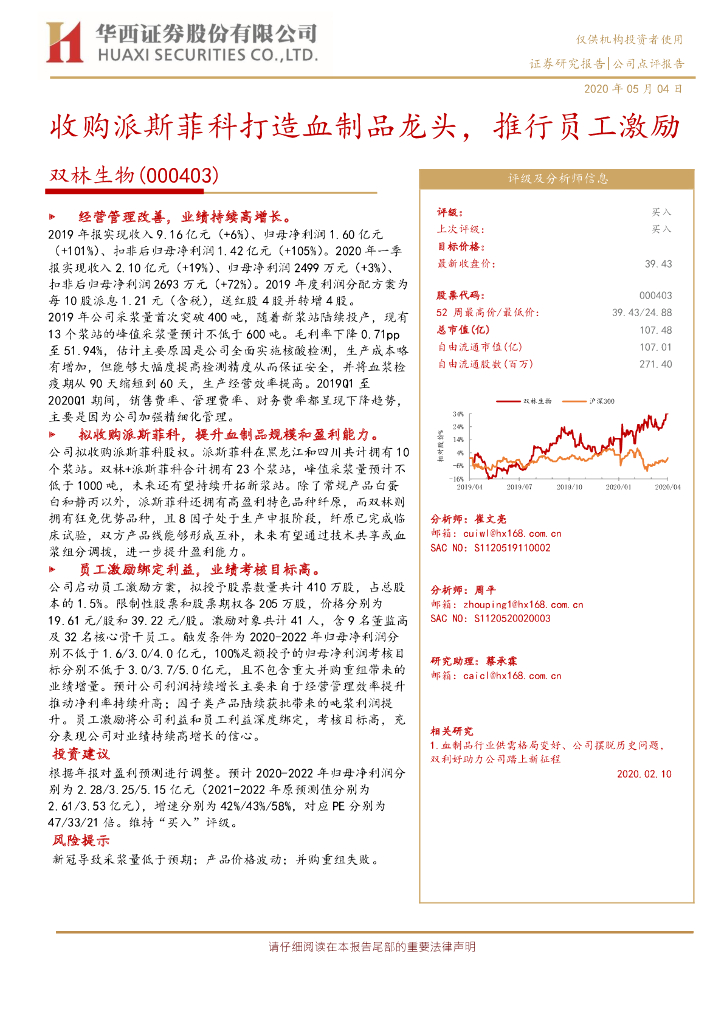 华西证券:双林生物(000403)-收购派斯菲科打造血制品龙头,推行员工激励.pdf