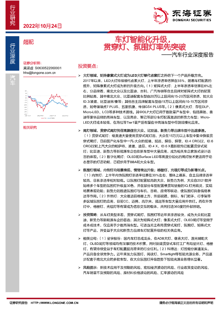 东海证券:汽车行业深度报告:车灯智能化升级,贯穿灯、氛围灯率先突破.pdf