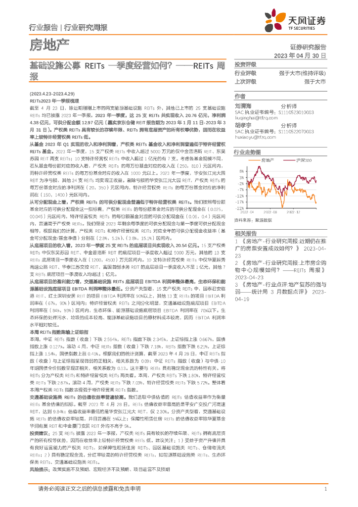 天风证券:房地产REITs周报:基础设施公募REITs一季度经营如何?.pdf