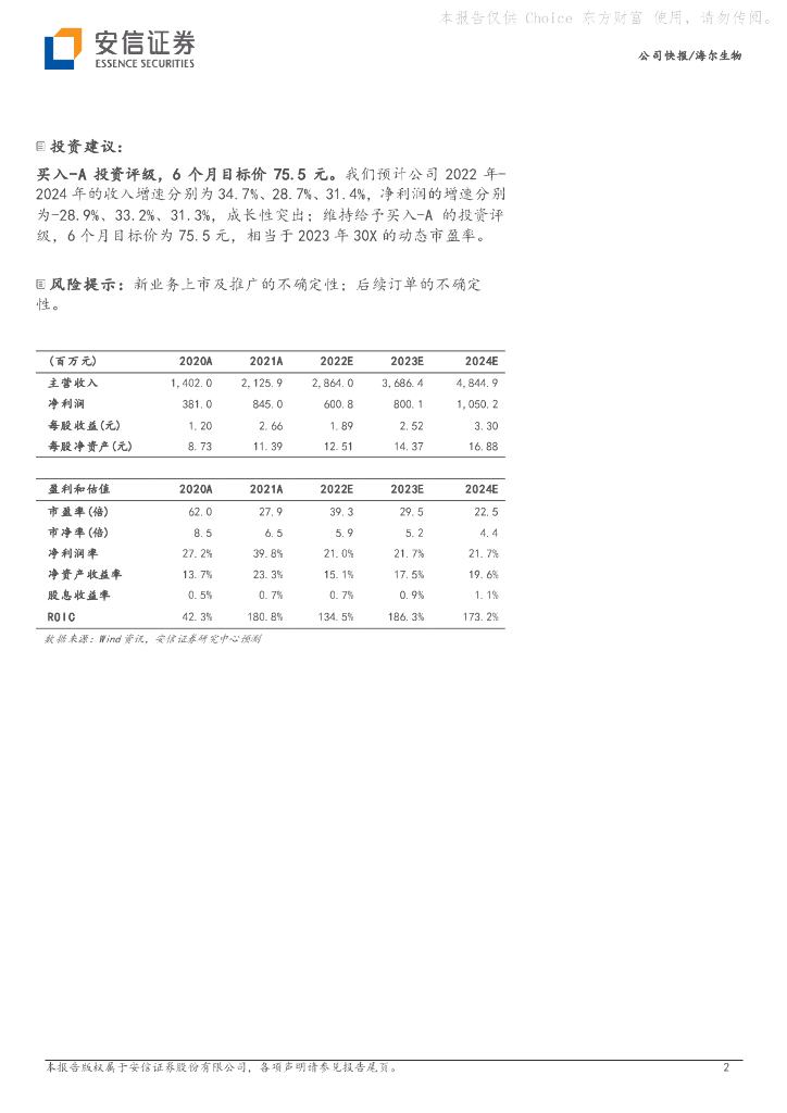 安信证券:海尔生物(688139)-22年快报基本符合预期,品类拓展持续推进.pdf