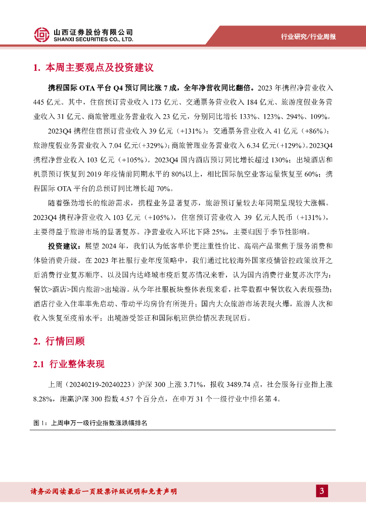 山西证券:行业研究/行业周报:携程国际OT A平台Q4预订同比涨7成,全年净营收同比翻倍.pdf