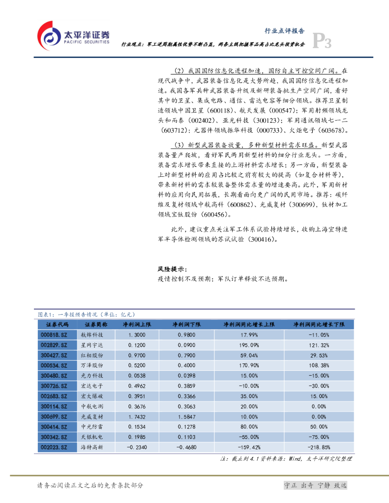 太平洋证券:军工行业观点:军工逆周期抗下滑属性优势不断凸显,把握军品高占比细分领域龙头投资机会.pdf