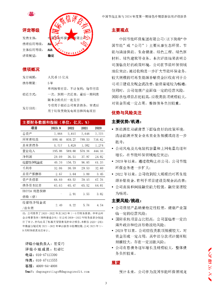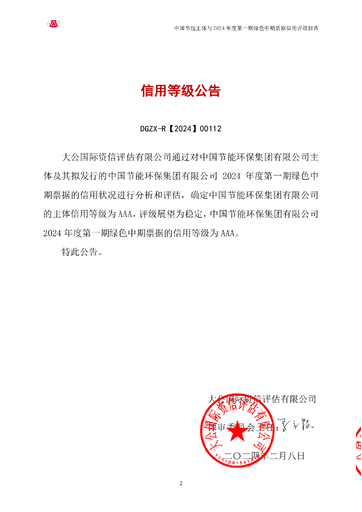 大公:中国节能环保集团有限公司2024年度第一期绿色中期票据评级报告.pdf