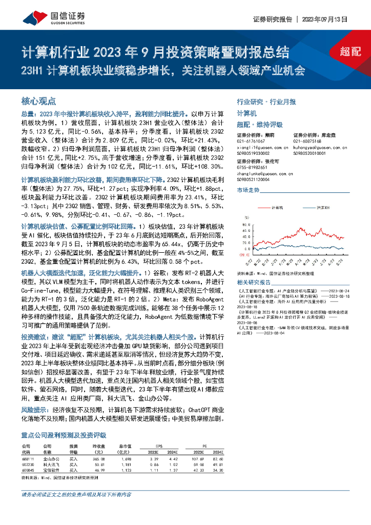 国信证券:计算机行业2023年9月投资策略暨财报总结:23H1计算机板块业绩稳步增长,关注机器人领域产业机会.pdf