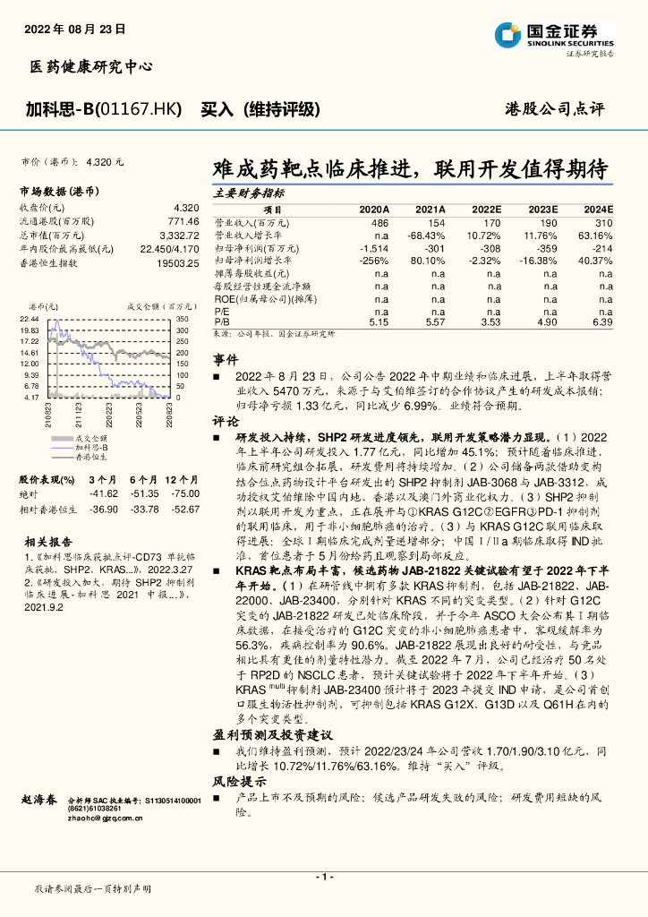 国金证券:加科思-B(01167)港股公司研究报告-难成药靶点临床推进,联用开发值得期待.pdf