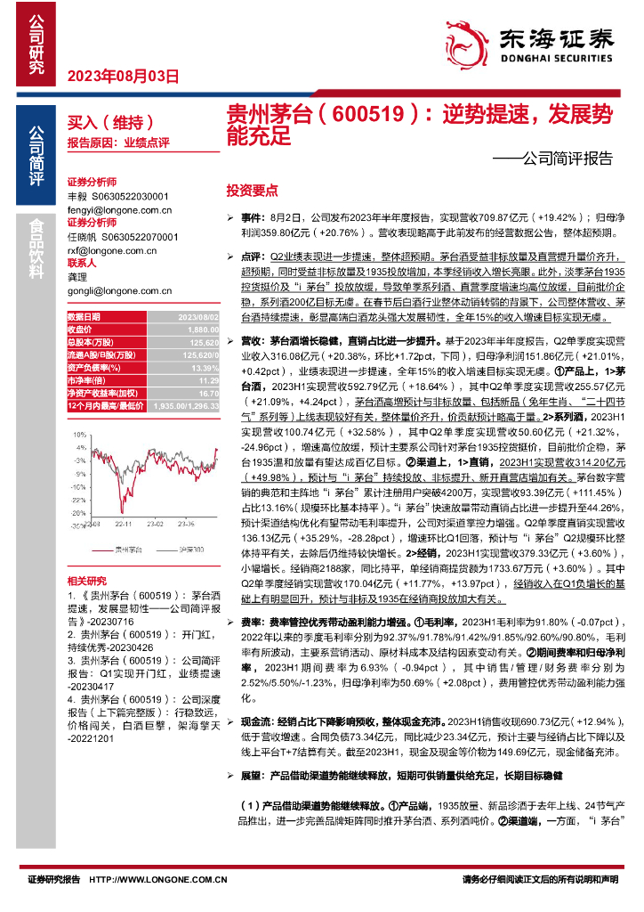 东海证券:贵州茅台(600519)-公司简评报告:逆势提速,发展势能充足.pdf