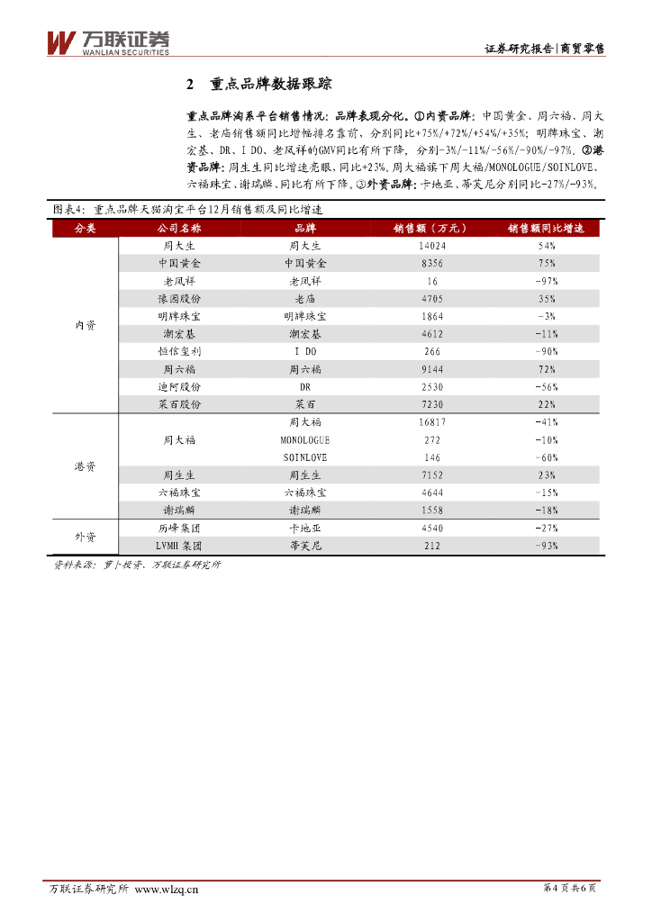 万联证券:12月珠宝电商数据跟踪报告:12月黄金珠宝线上数据表现平淡,头部品牌表现分化.pdf