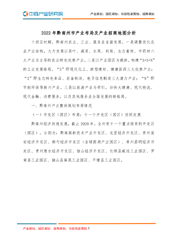 中商产业研究院:2022年黔南州市产业布局及产业招商地图分析.pdf