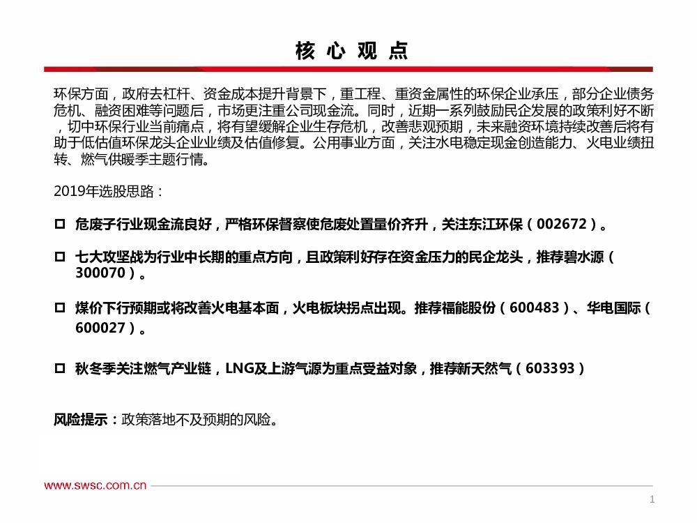 西南证券:环保公用事业行业2019年投资策略:攻守兼备,稳健为上.pdf