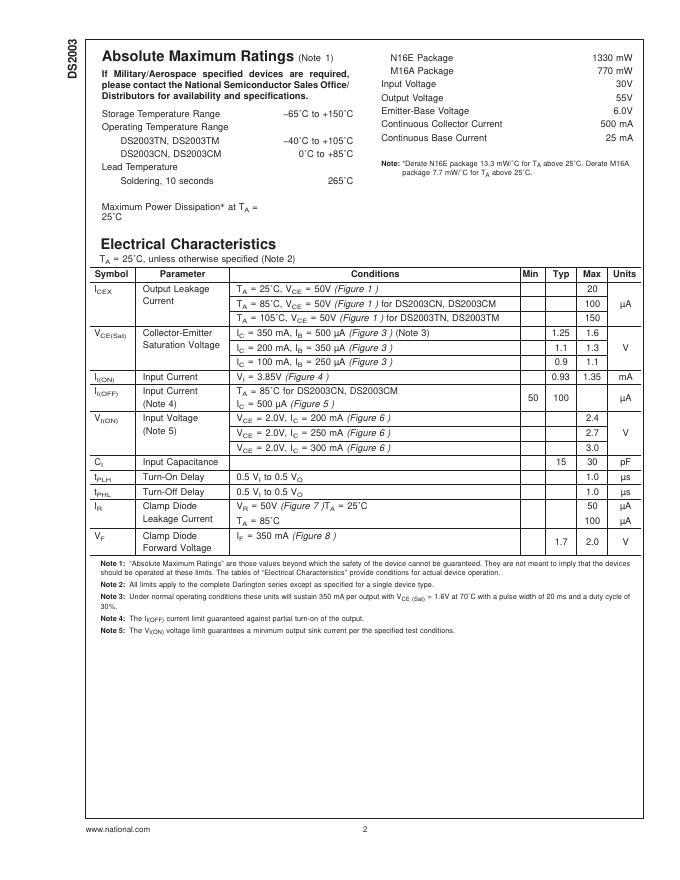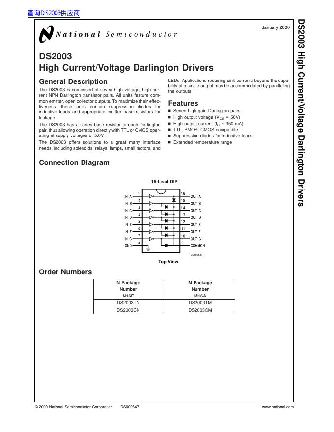 National Semiconductor DS2003 High Current/Voltage Darlington Drivers 数据手册.pdf