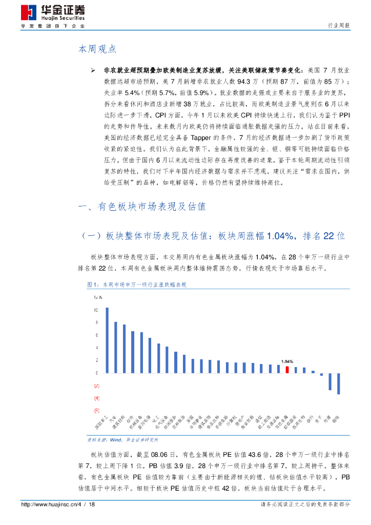 华金证券:有色金属行业周报:美非农就业超预期,关注美联储政策节奏变化.pdf