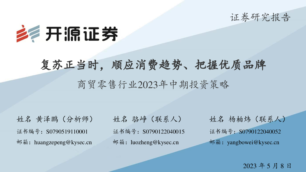 开源证券:商贸零售行业2023年中期投资策略:复苏正当时,顺应消费趋势、把握优质品牌.pdf