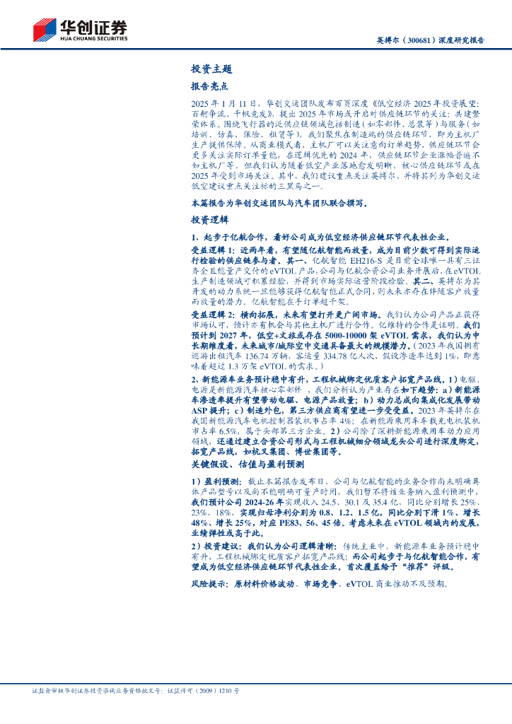 华创证券:英搏尔(300681)深度研究报告新能源车到低空经济,公司有望成为低空制造端供应链环节代表性企业.pdf