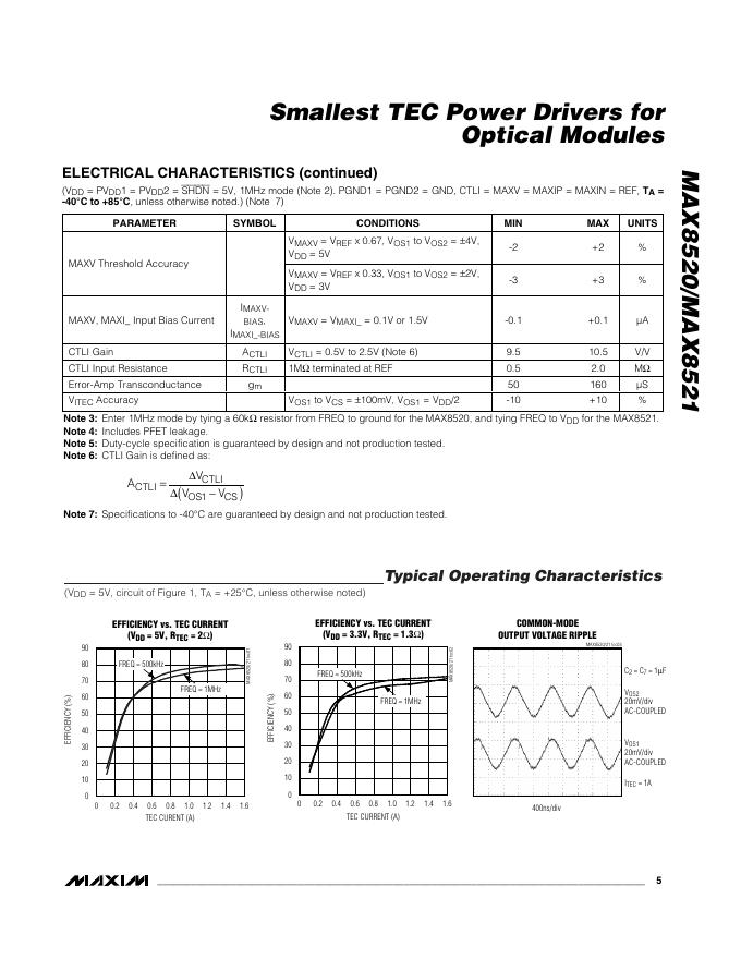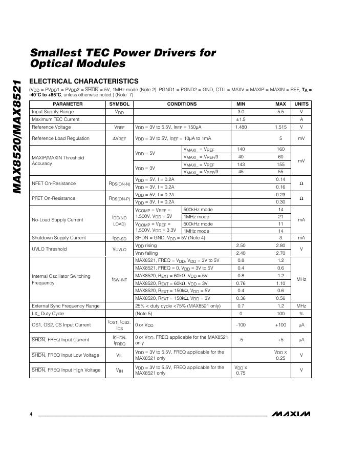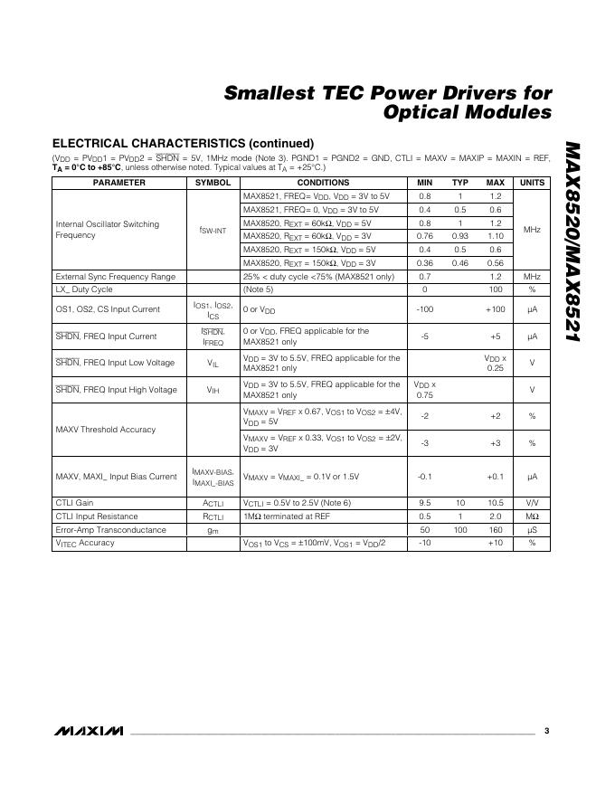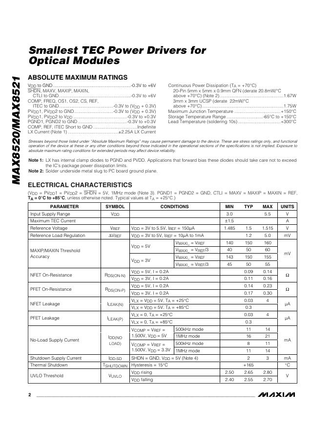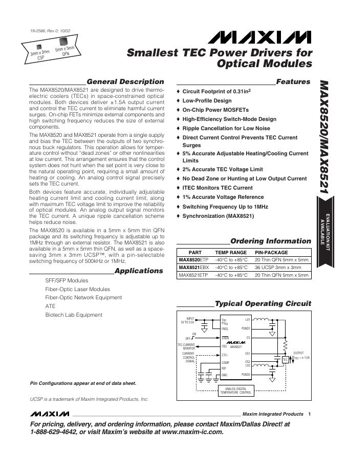 MAXIM INTEGRATED PRODUCTS MAX8520/MAX8521 Smallest TEC Power Drivers for Optical Modules 数据手册.pdf