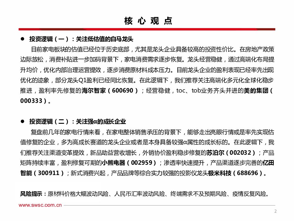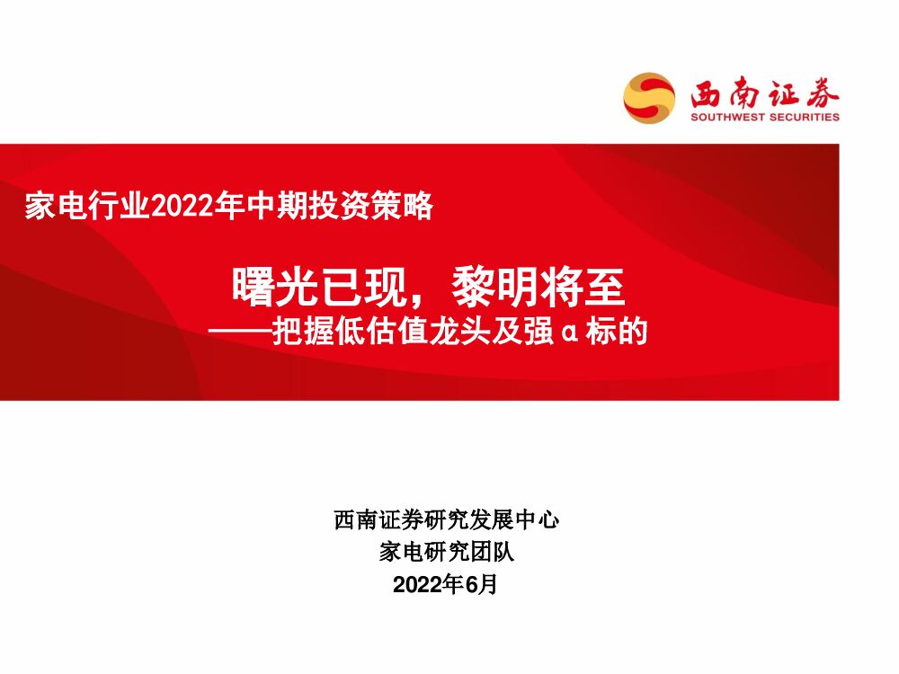 西南证券:家电行业2022年中期投资策略:曙光已现,黎明将至——把握低估值龙头及强α标的.pdf
