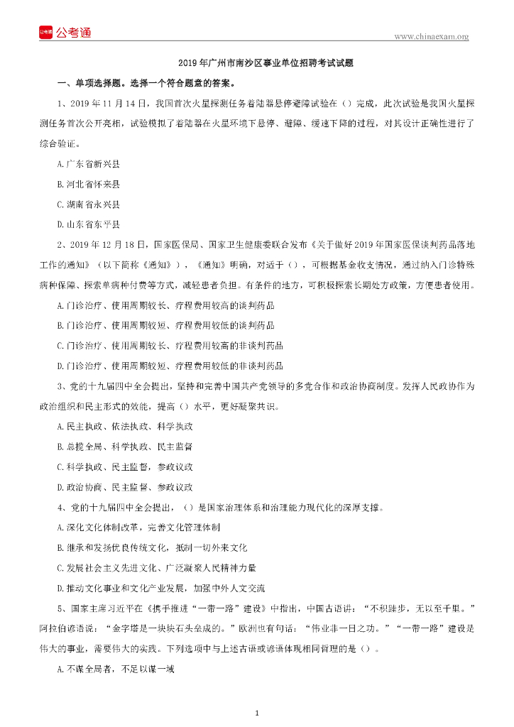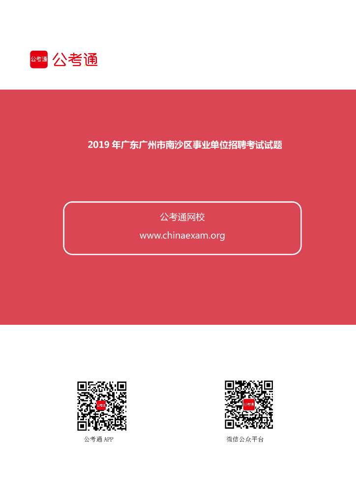 2019年广东广州市南沙区事业单位招聘考试试题.pdf