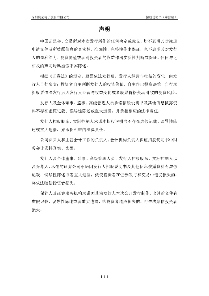 深圳奥尼电子股份有限公司深交所创业板IPO上市招股说明书.pdf