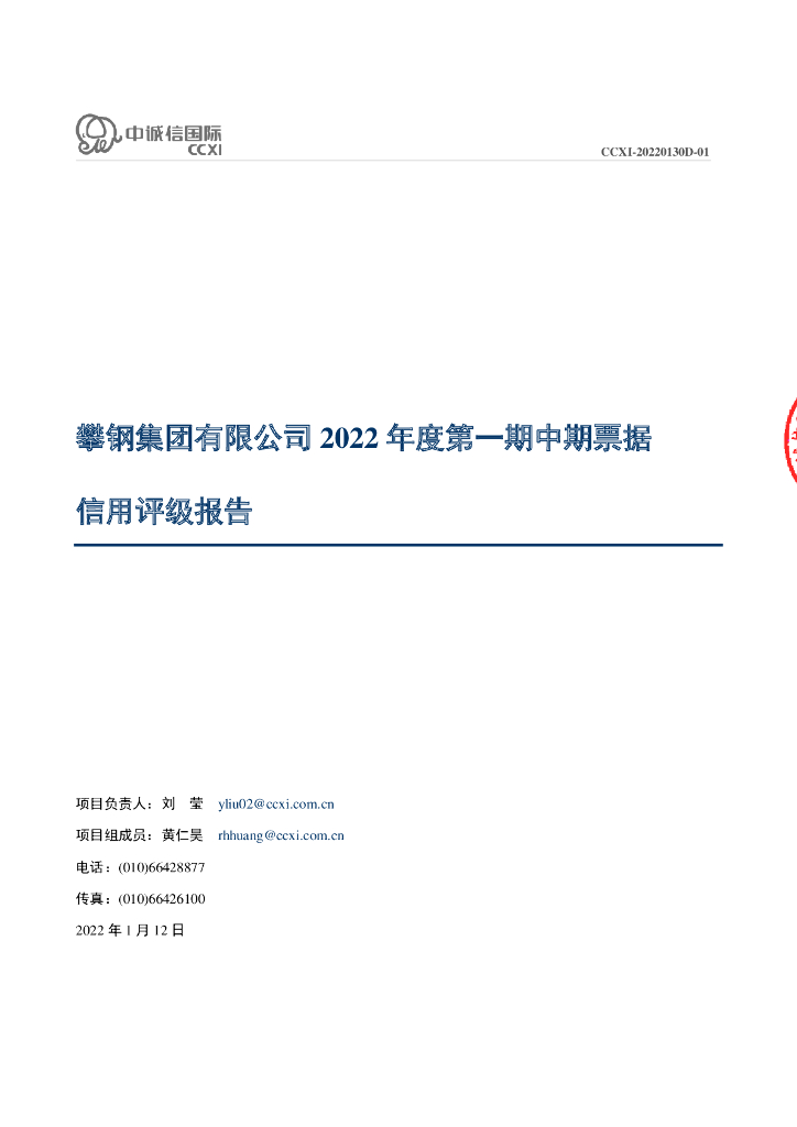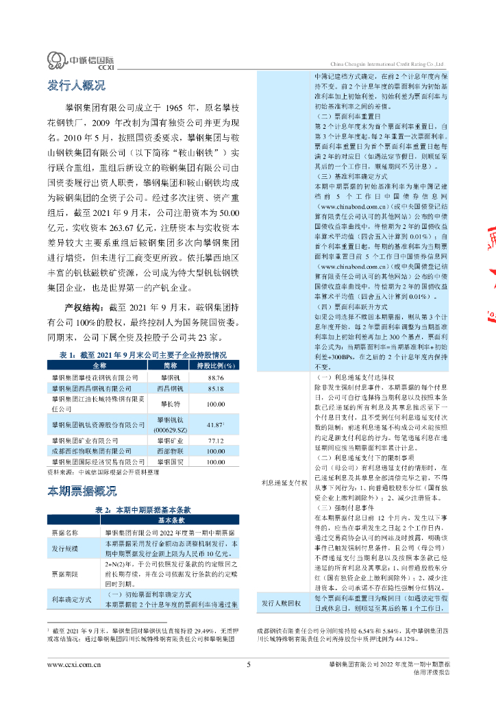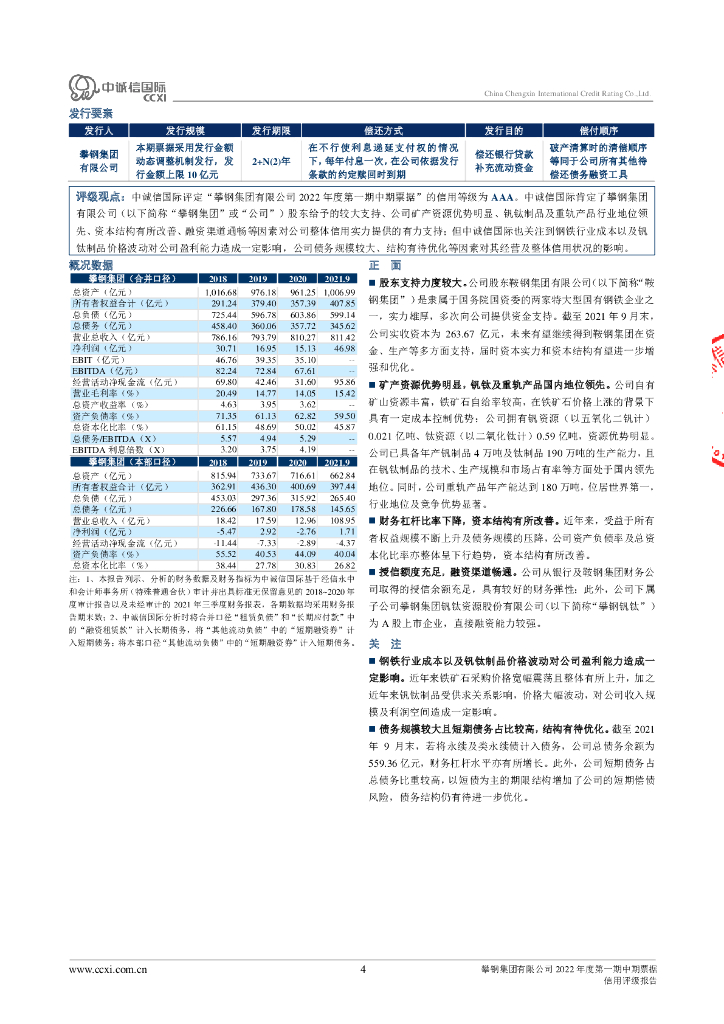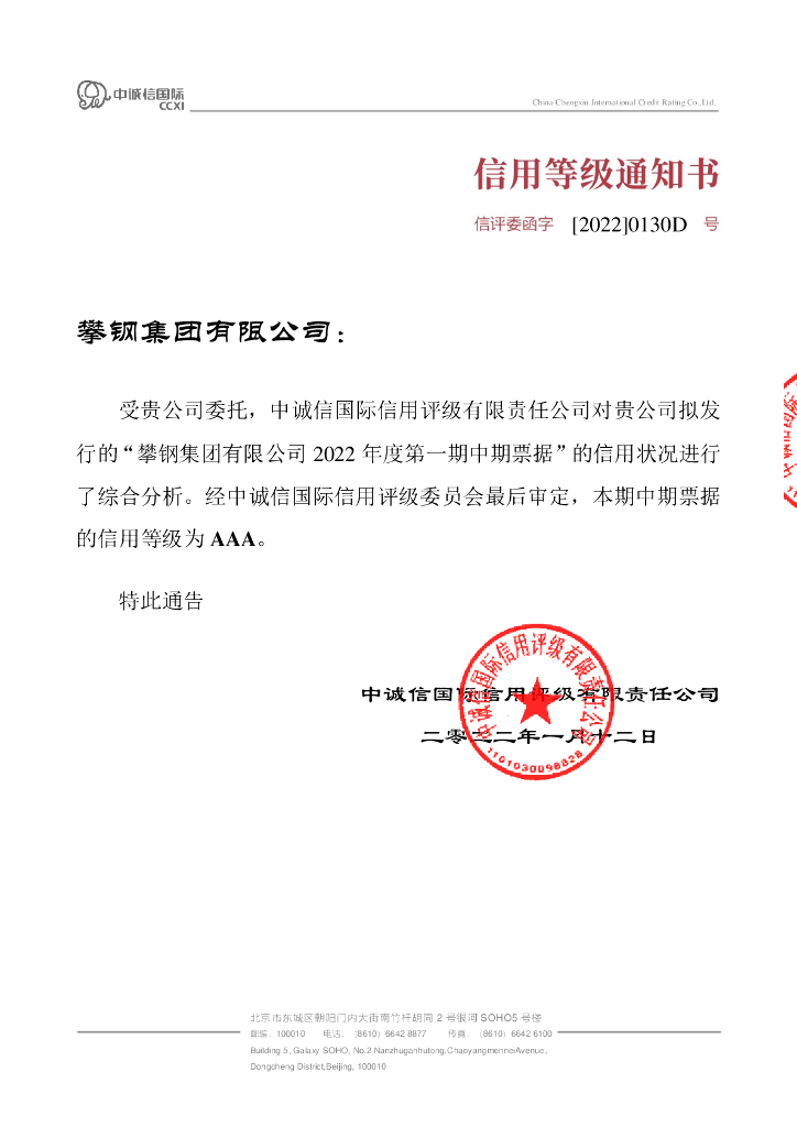 中诚信:攀钢集团有限公司2022年度第一期中期票据信用评级报告及跟踪评级安排.pdf