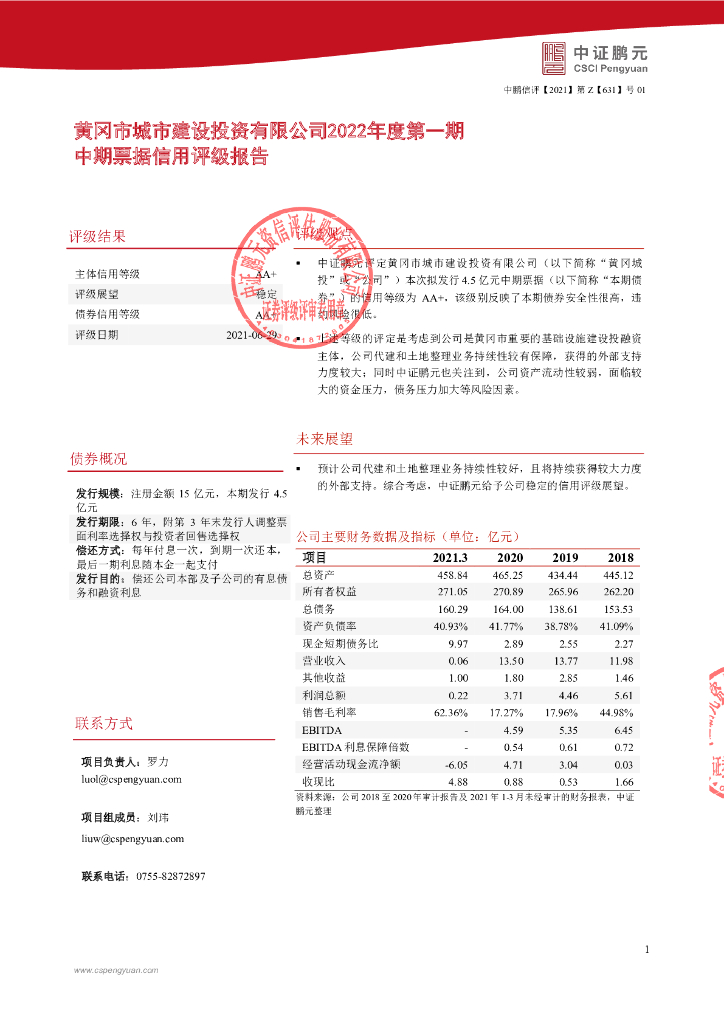 鹏元:黄冈市城市建设投资有限公司主体信用评级报告.pdf