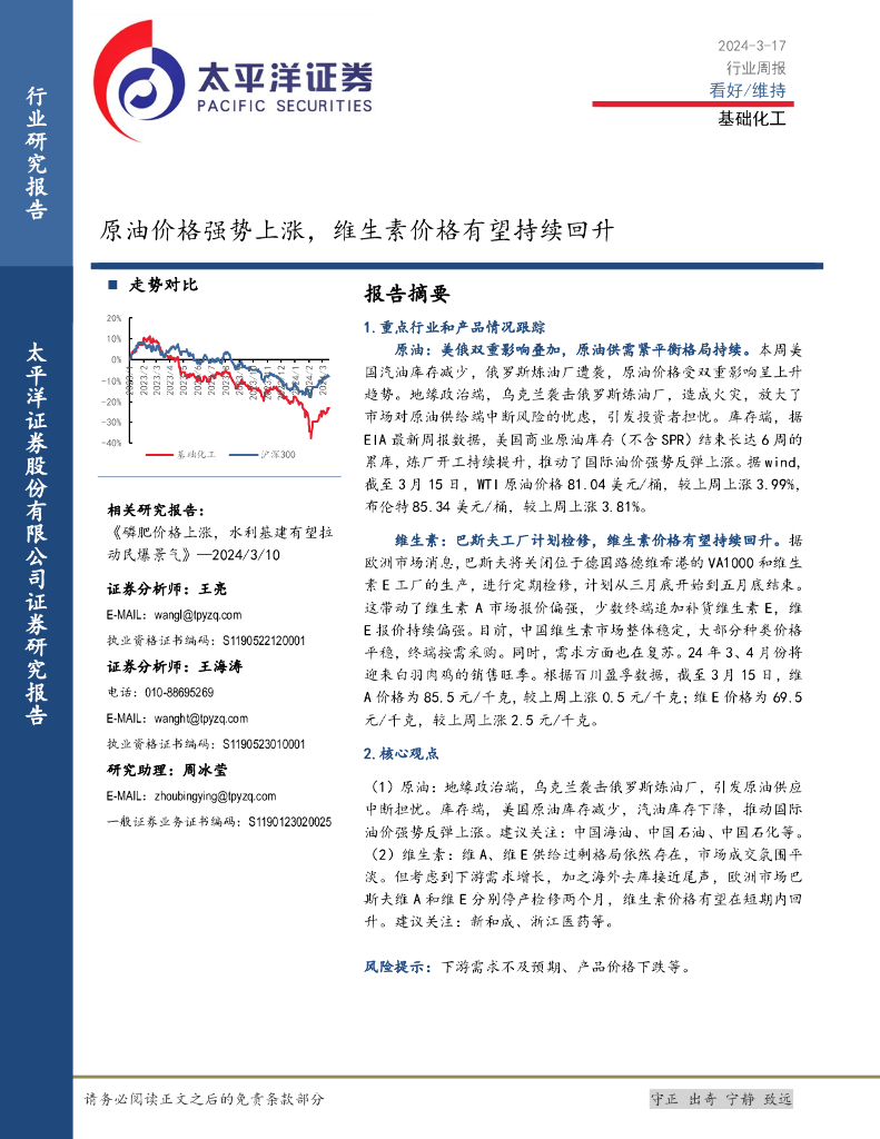 太平洋证券:基础化工行业周报:原油价格强势上涨,维生素价格有望持续回升.pdf