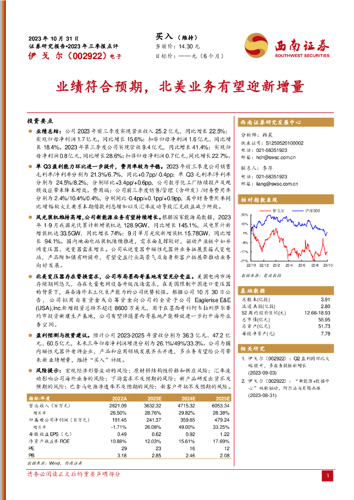 西南证券:伊戈尔(002922)-2023年三季报点评:业绩符合预期,北美业务有望迎新增量.pdf