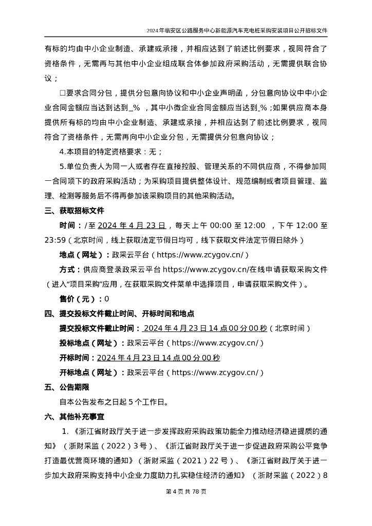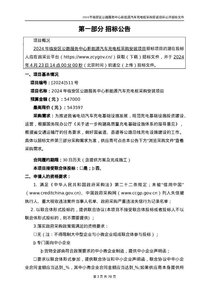 新能源汽车充电桩采购安装项目招标文件.doc