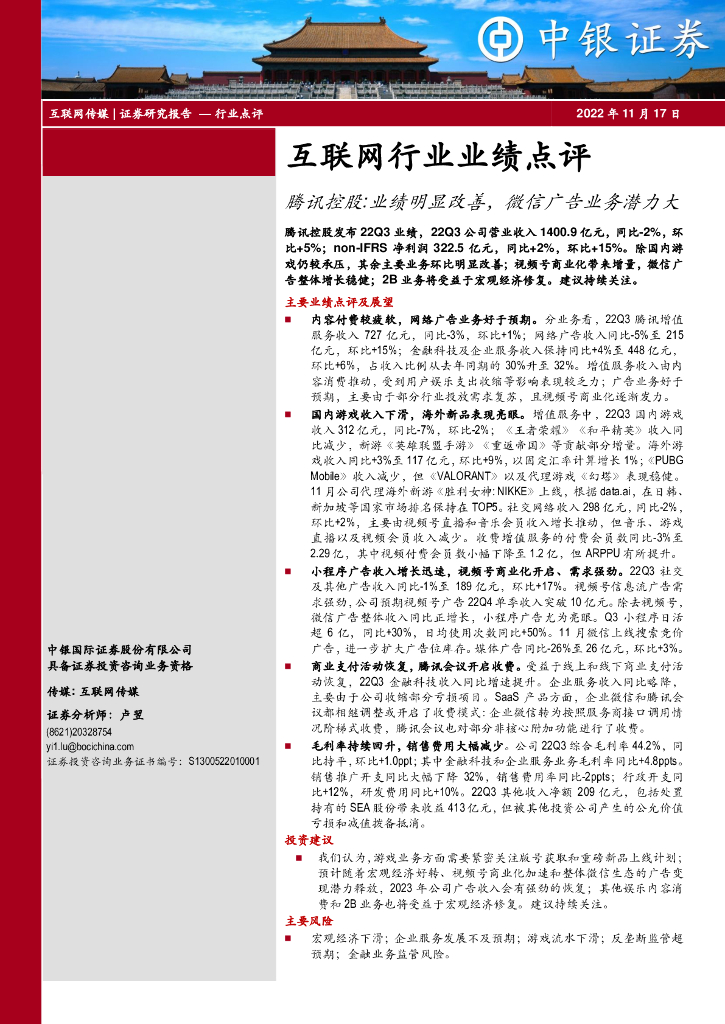 中银证券:互联网行业业绩点评:腾讯控股:业绩明显改善,微信广告业务潜力大.pdf
