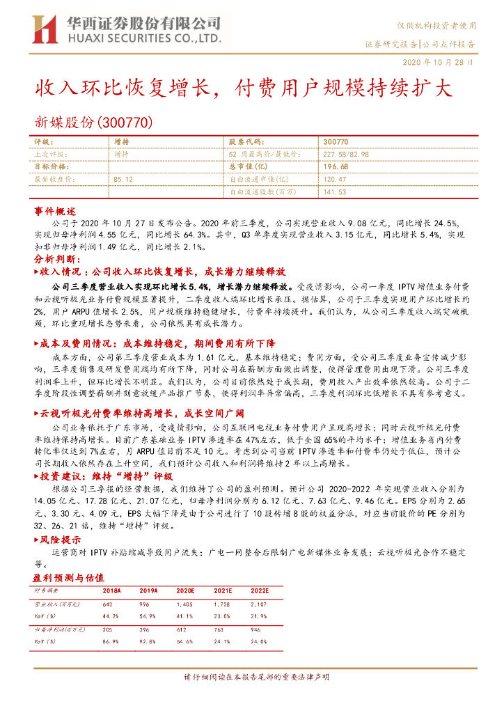 华西证券:新媒股份(300770)-收入环比恢复增长,付费用户规模持续扩大.pdf