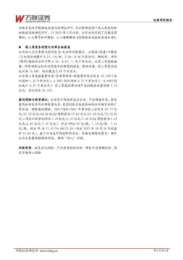 万联证券:康缘药业(600557)-点评报告:非注射剂Q3业绩承压,各剂型毛利率全面提高.pdf