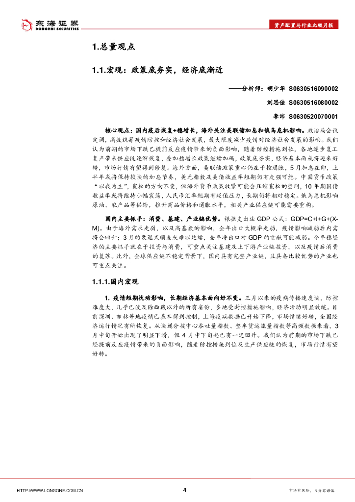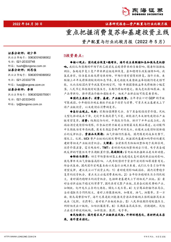 东海证券:资产配置与行业比较月报(2022年5月):重点把握消费复苏和基建投资主线.pdf