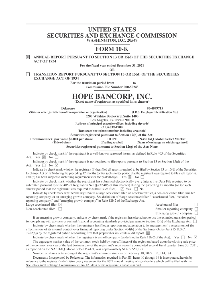 Hope Bancorp, Inc.(HOPE)2021财年年度报告(英文版).pdf