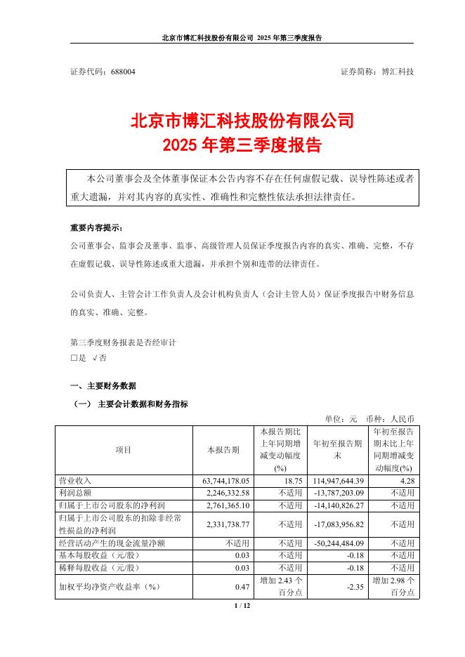 688004-博汇科技:博汇科技2025年第三季度报告.pdf