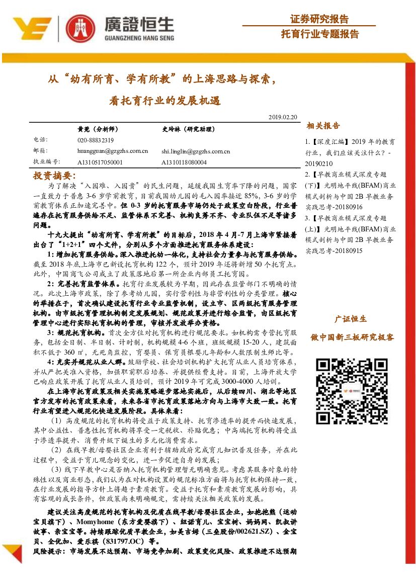 广证恒生证券研究所:托育行业专题报告:从“幼有所育、学有所教”的上海思路与探索,看托育行业的发展机遇.pdf