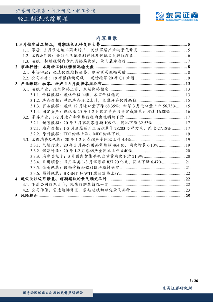 东吴证券:轻工制造跟踪周报:3月住宅竣工同比转正,首选建材家居景气、关注零售家居修复.pdf