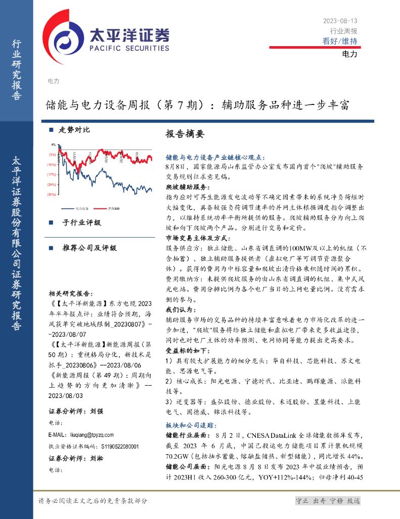 太平洋证券:储能与电力设备周报(第7期):辅助服务品种进一步丰富.pdf