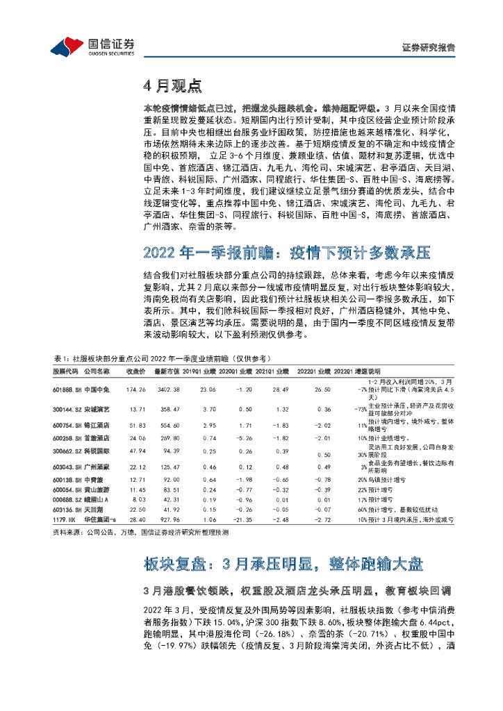 国信证券:社会服务行业4月策略暨一季报前瞻:本轮疫情情绪低点已过,把握龙头超跌机会.pdf
