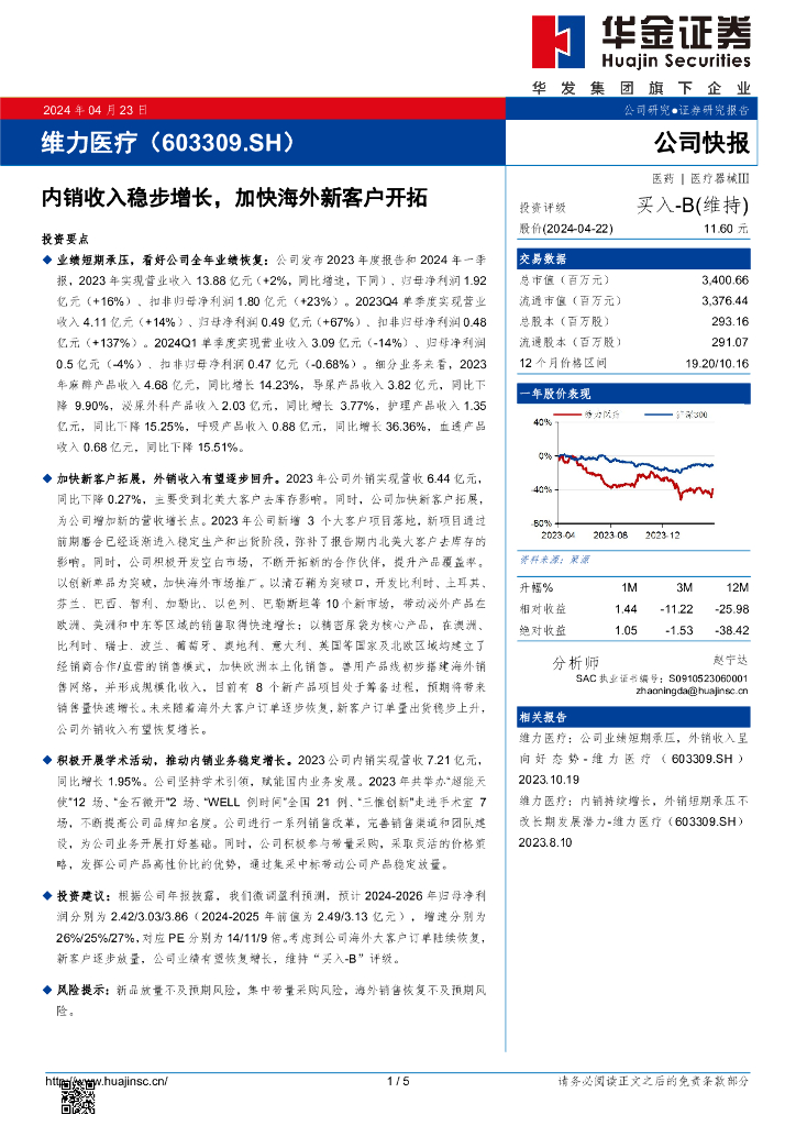 华金证券:维力医疗(603309)-内销收入稳步增长,加快海外新客户开拓.pdf