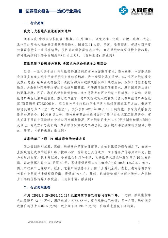 大同证券:造纸行业周报:双十一大促驱动包装纸提价.pdf
