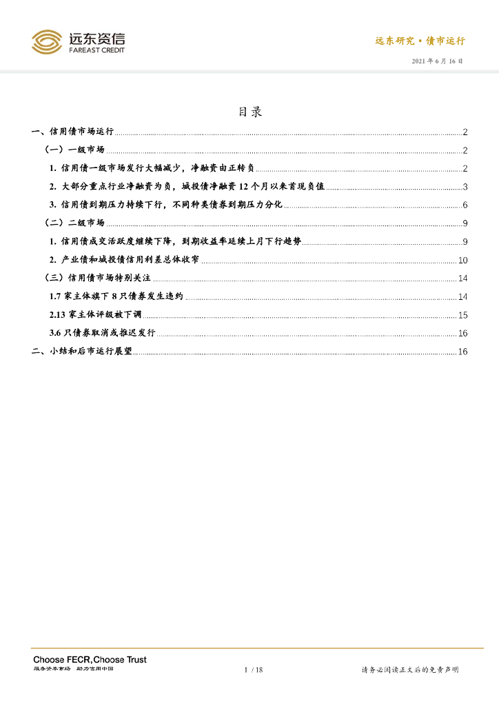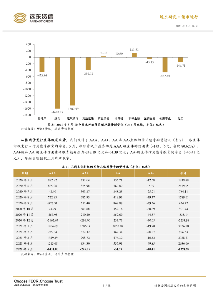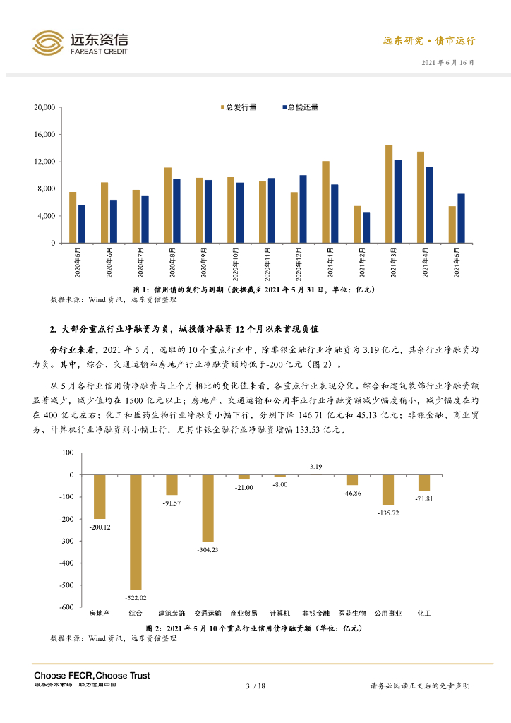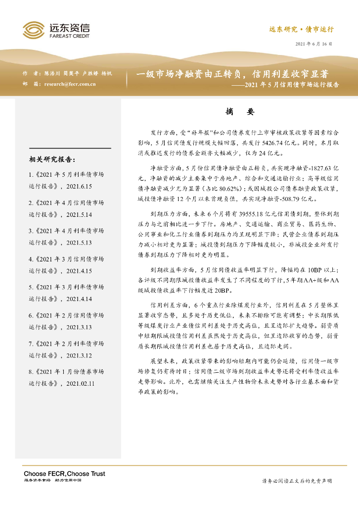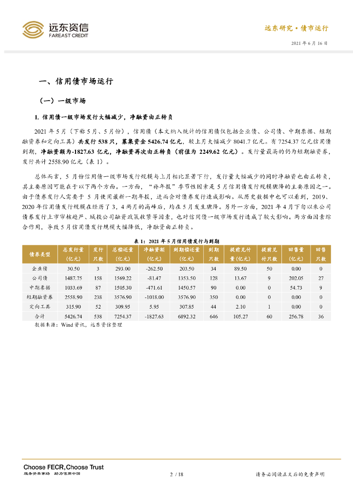 远东资信:2021年5月信用债市场运行报告:一级市场净融资由正转负,信用利差收窄显著.pdf