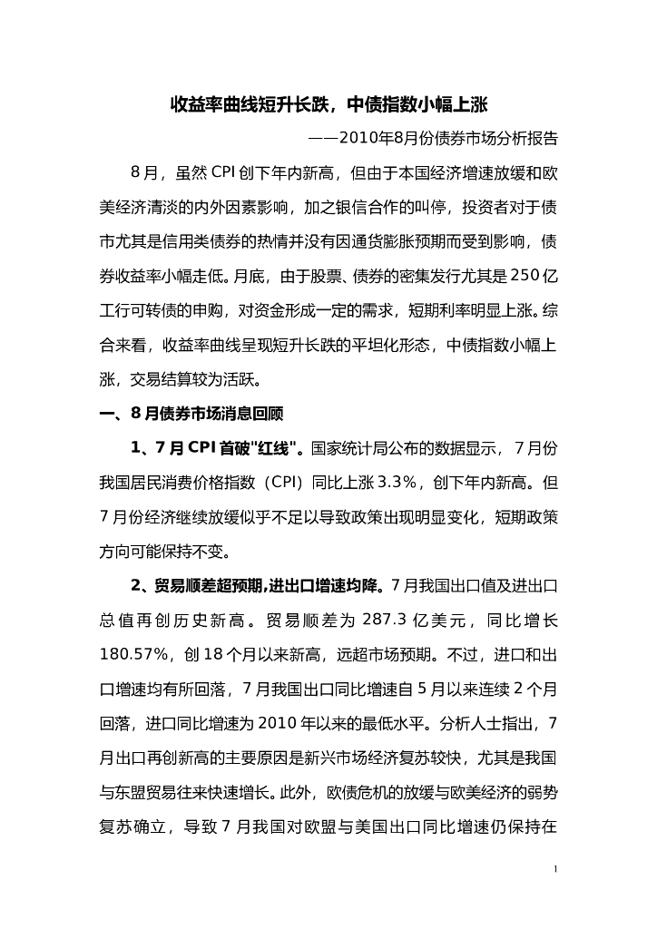 中债研发中心:2010年8月份债券市场分析报告.doc