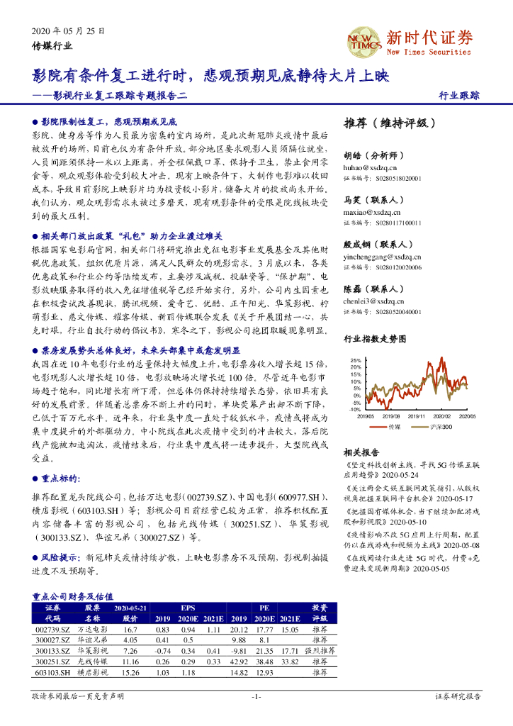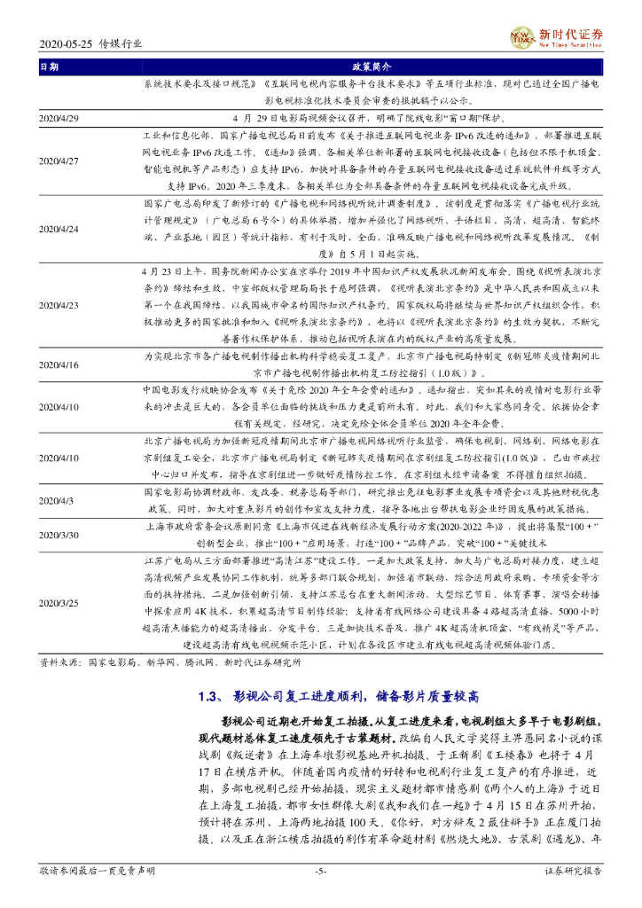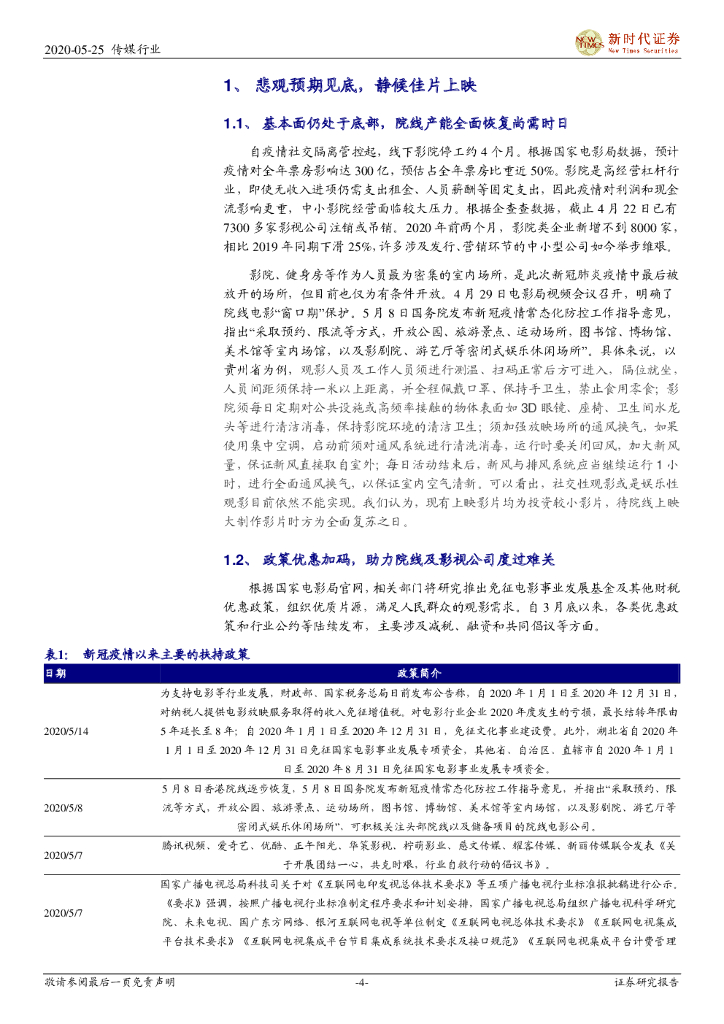 新时代证券:影视行业复工跟踪专题报告二:影院有条件复工进行时,悲观预期见底静待大片上映.pdf