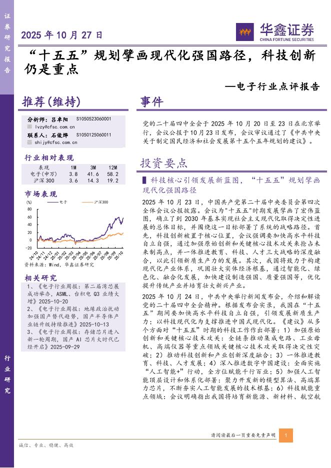 华鑫证券:电子行业点评报告:“十五五”规划擘画现代化强国路径,科技创新仍是重点.pdf