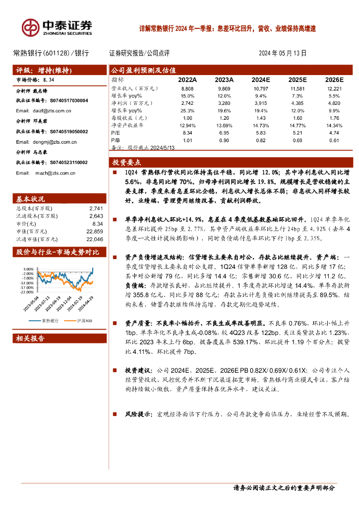 中泰证券:详解常熟银行2024年一季报:息差环比回升,营收、业绩保持高增速.pdf