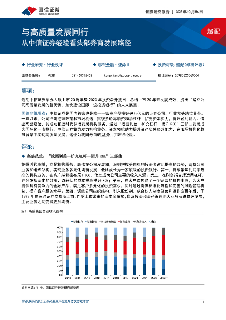 国信证券:非银金融行业快评:与高质量发展同行,从中信证券经验看头部券商发展路径.pdf