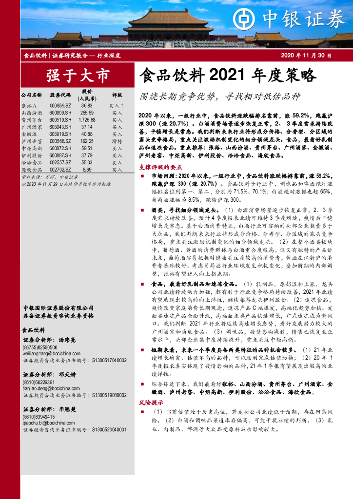 中银证券:食品饮料2021年度策略:围绕长期竞争优势,寻找相对低估品种.pdf